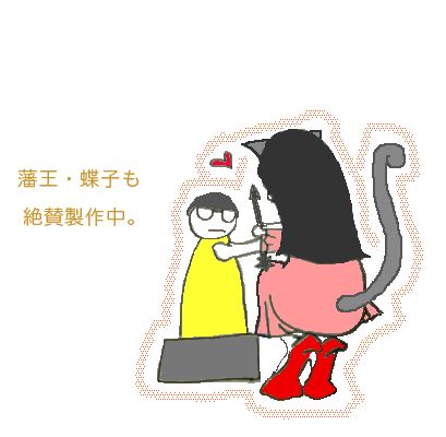 み、見つかった…・?! 藩王蝶子が深夜にこっそり作品を彫っている所です。 (画像提供:小奴さん)